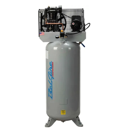A heavy-duty 7.5 HP unit featuring an 80-gallon vertical tank, this model is designed for high-demand industrial environments where a 175 PSI maximum and magnetic starter are required.
